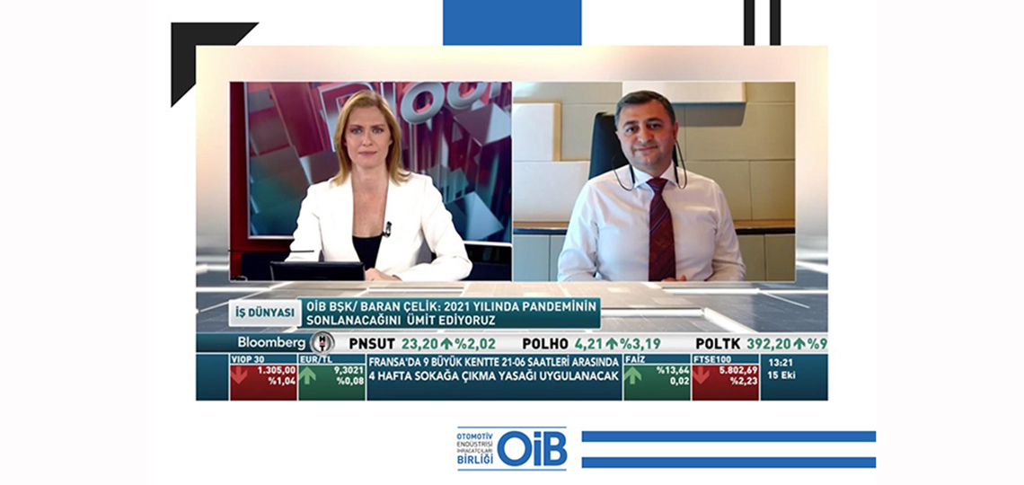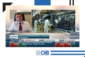 Uludağ Otomotiv Endüstrisi İhracatçıları Birliği (OİB) Yönetim Kurulu Başkanı Baran Çelik BloombergHT TV'de Hande Berktan'ın sunduğu İş Dünyası programına katıldı. Eylül ayında yılın en yüksek ihracat rakamına ulaşan otomotiv endüstrisi ile ilgili genel bir değerlendirme yapan Çelik, 27 Ekim'de online olarak düzenlenecek Otomotivin Geleceği Tasarım Yarışması ve çeşitli ülkelere yönelik sektörel dijital ticaret heyeti etkinlikleri hakkında bilgiler verdi.