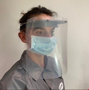Yüz kalkanının alına oturan sert plastik kısmı 3D yazıcıyla üretiliyor. Şeffaf kalkan kısmı hazır PETG plakadan lazer kesim ile kesiliyor. Arkadaki lastik hazır olarak tedarik edilerek, boyutlandırılıyor ve zımba ile monte ediliyor.