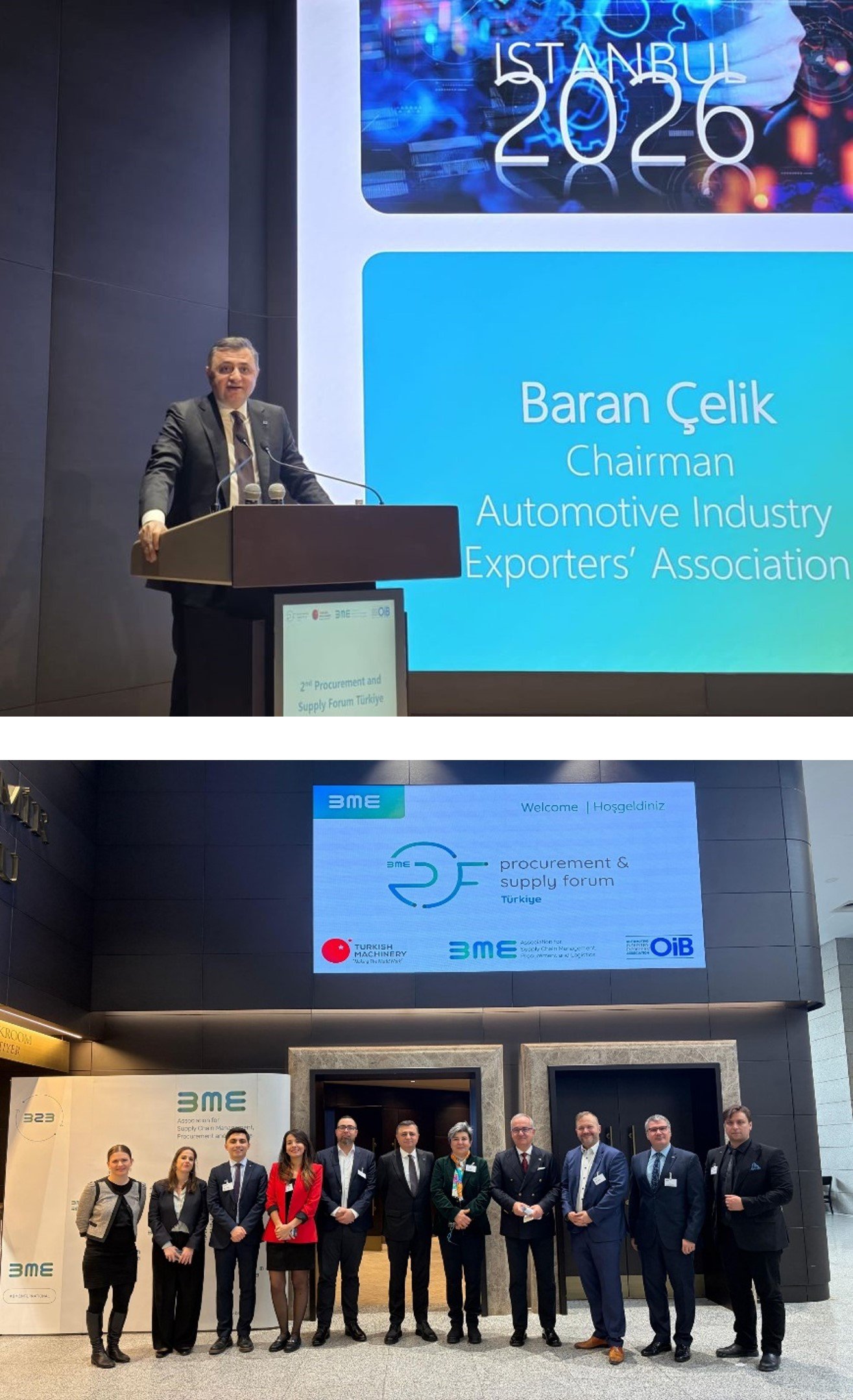 Uludağ Otomotiv Endüstrisi İhracatçıları Birliği olarak, Makine İhracatçıları Birliği ve Almanya’nın satın alma ve lojistik alanındaki çatı kuruluşu BME iş birliğinde düzenlenen 2. Tedarik ve Satın Alma Forumu, İstanbul’da gerçekleştirildi. Açılışta konuşan Başkanımız Baran Çelik ile Makine İhracatçıları Birliği YK Başkan Yardımcısı Sevda Kayhan Yılmaz ve BME Dış İlişkiler Direktörü Olaf Holzgrefe, Türkiye ile Almanya arasındaki güçlü ekonomik ve ticari ilişkilere vurgu yaptılar.