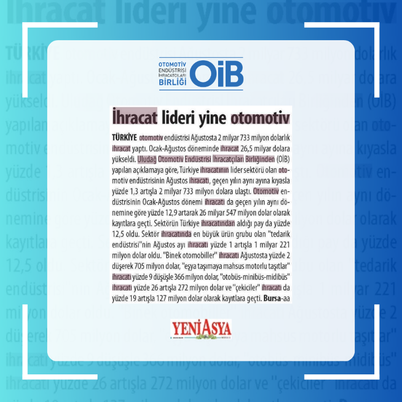OİB EYLÜL AYI BASIN YANSIMALARI